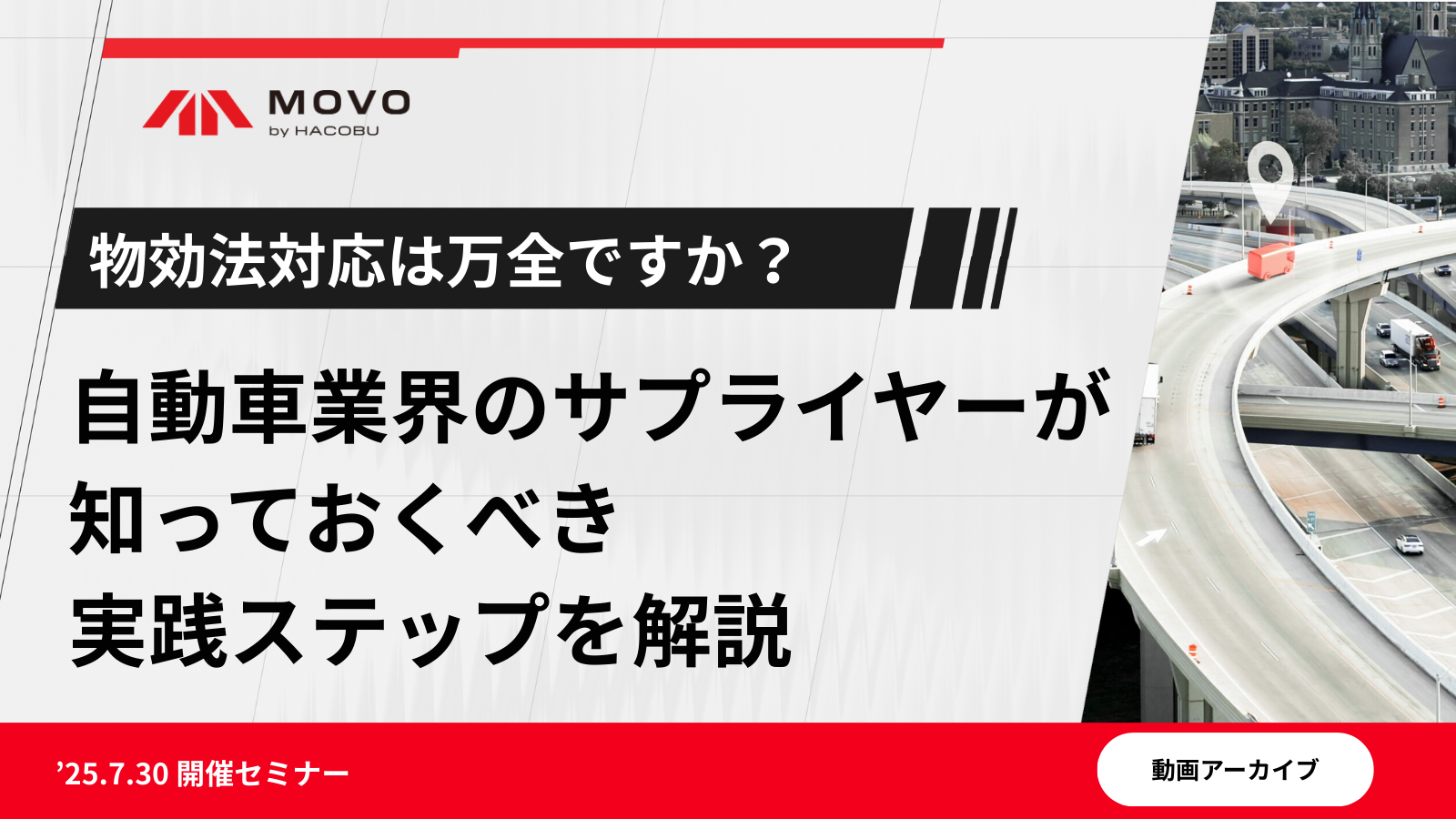 本セミナーでは、自動車業界のサプライヤー様に向け、改正物効法への対応、特に「荷待ち・荷役時間」と「積載効率」の把握に向けた具体的な取り組みのステップを分かりやすく解説いたします。