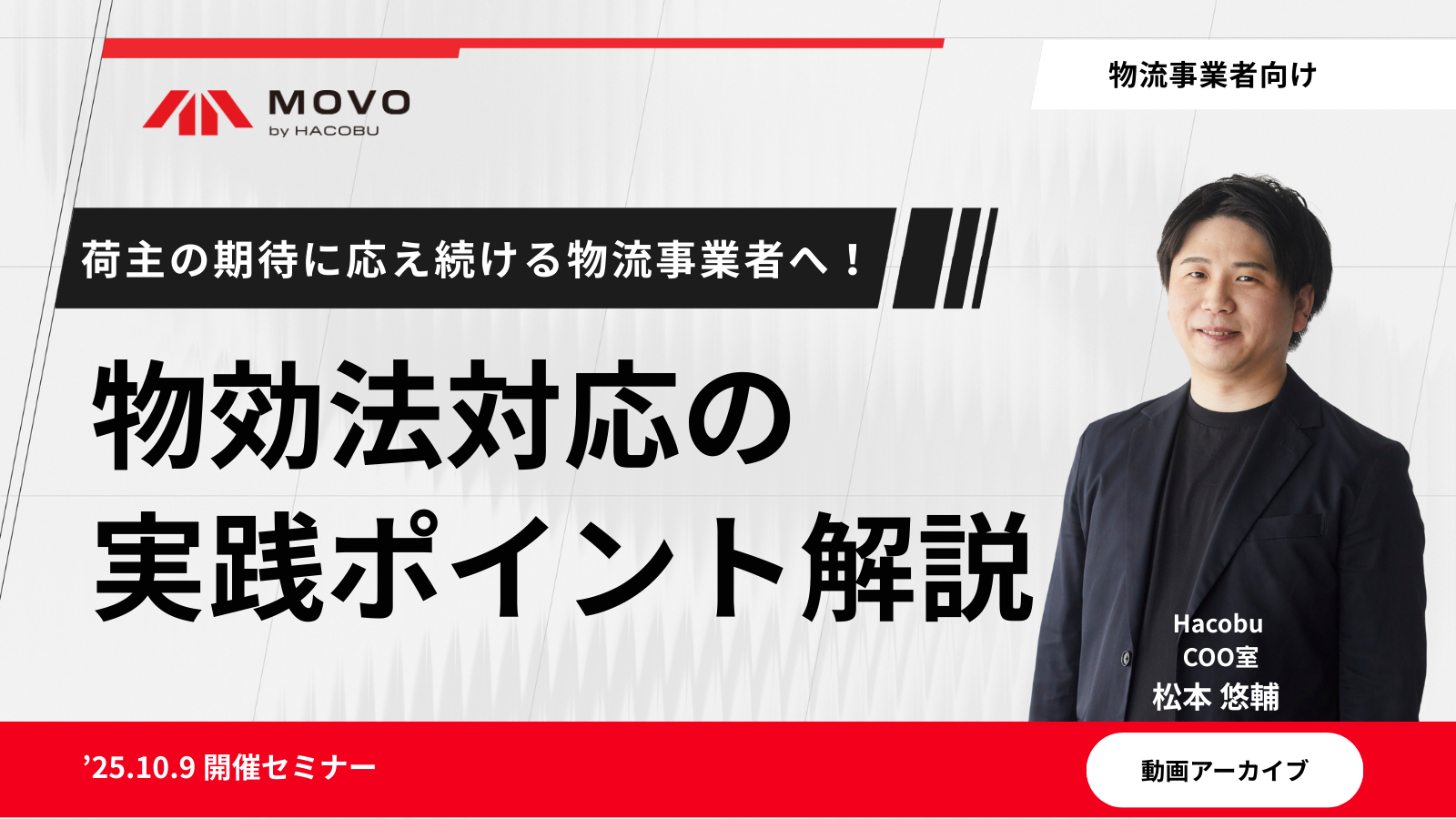 本セミナーでは、改正物効法により物流事業者が取るべき対応と、荷主と共通のデータを扱う重要性を、ユースケースを交えて解説いたします。