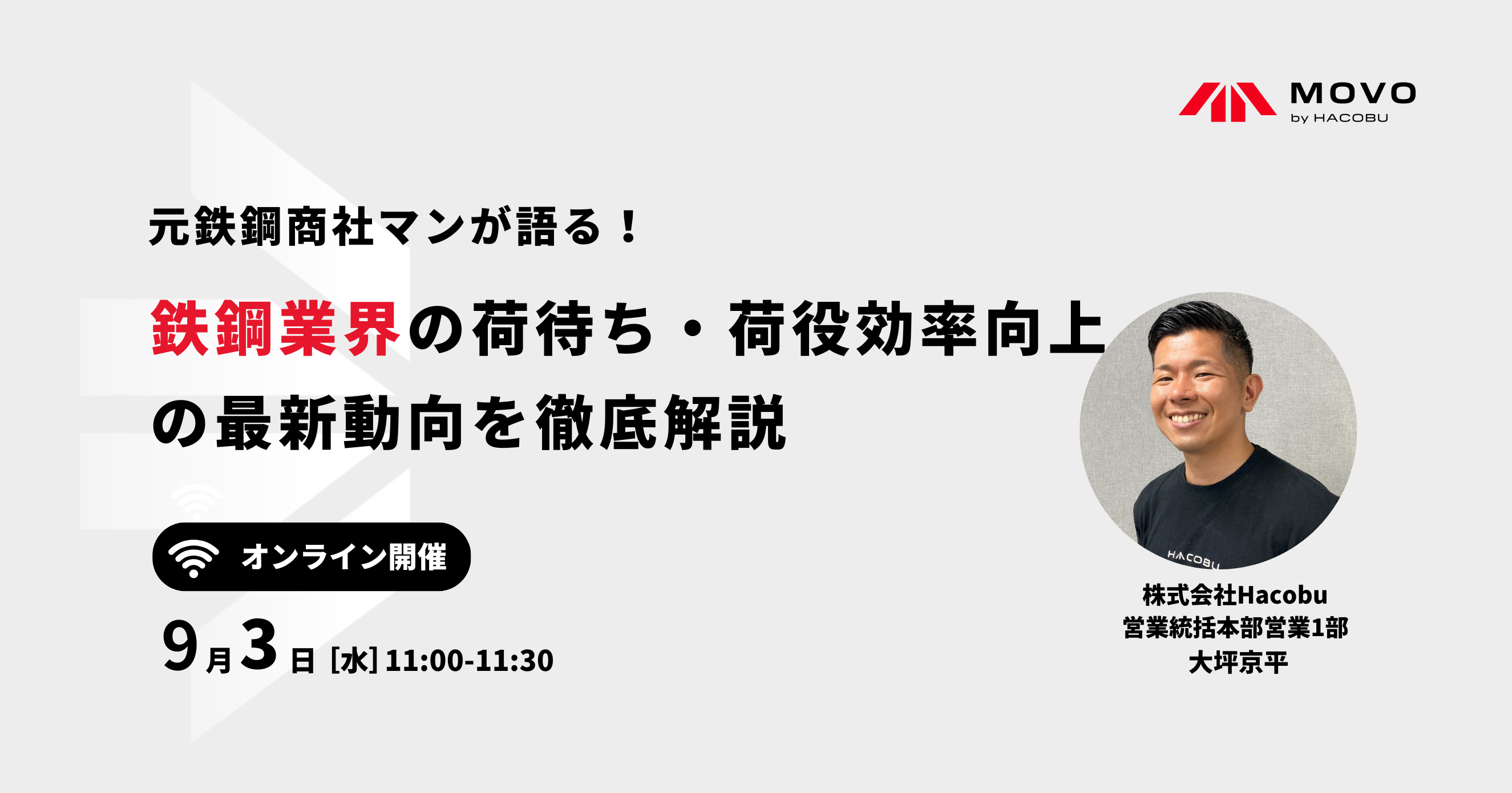 本セミナーでは、こうしたリスク対応にとどまらず、現場業務の負担軽減や効率向上の手法をご案内します。鉄鋼業界の特殊な商習慣や工場運用の実態に精通した元鉄鋼商社マンの担当者が、すぐに始められる荷待ち・荷役削減の取り組みと、その先の現場改善に向けた可能性について徹底解説します。ぜひこの機会に、業務効率化のヒントを見つけてください。