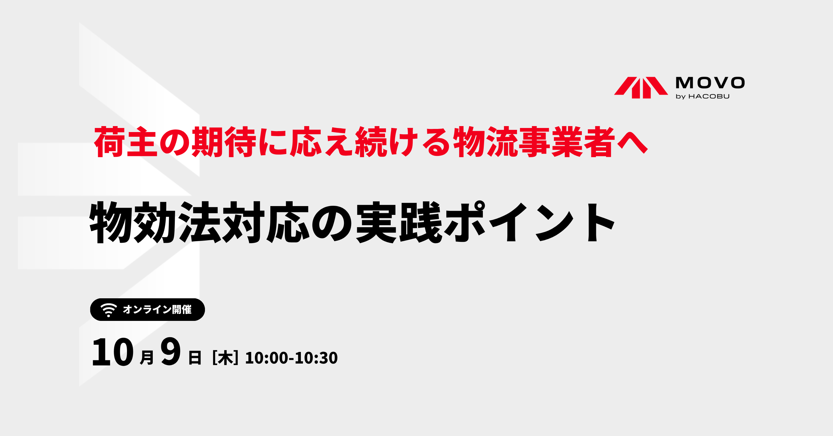 物流事業者の皆様、物効法改正で求められる「物流改善」への対応は進んでいますか?改正物効法により、荷主から「荷待ち削減」や「荷役効率向上」への協力要請が増えると見込まれています。こうした要請に円滑に応えるためには、荷主と同じ粒度で現場の物流データを管理・共有できる体制を整えることが重要です。本セミナーでは、改正物効法により物流事業者が取るべき対応と、荷主と共通のデータを扱う重要性を、ユースケースを交えて解説いたします。