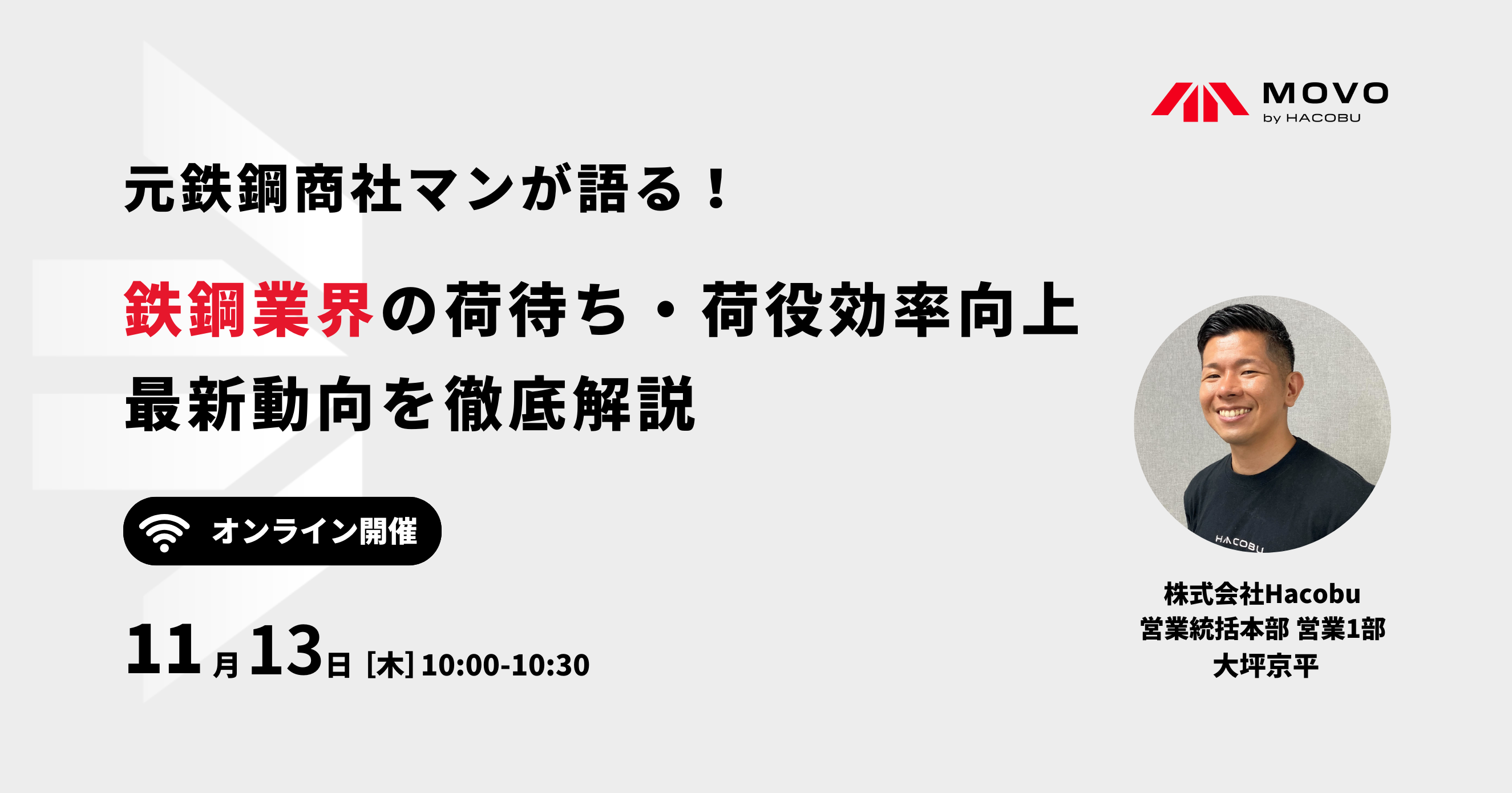 本セミナーでは、こうしたリスク対応にとどまらず、現場業務の負担軽減や効率向上の手法をご案内します。鉄鋼業界の特殊な商習慣や工場運用の実態に精通した元鉄鋼商社マンの担当者が、すぐに始められる荷待ち・荷役削減の取り組みと、その先の現場改善に向けた可能性について徹底解説します。ぜひこの機会に、業務効率化のヒントを見つけてください。