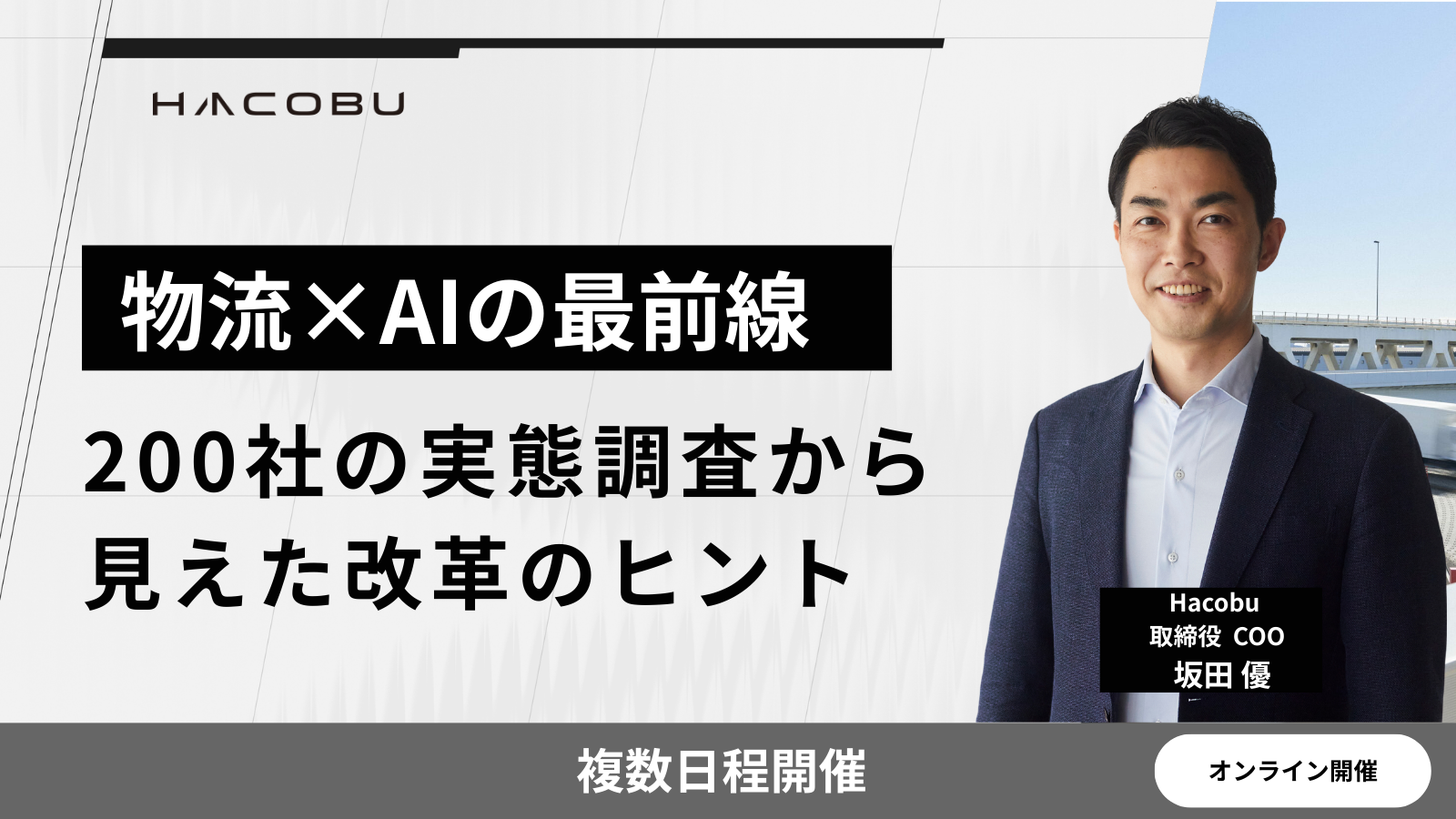 2016年1月よりHacobu創業に参画し、荷主企業、3PL事業者、運送会社といった物流にかかわるあらゆるレイヤーの企業の物流DXに携わり、変革を支援。2025年6月より、システムインテグレーション&AI導入支援事業の立ち上げに従事