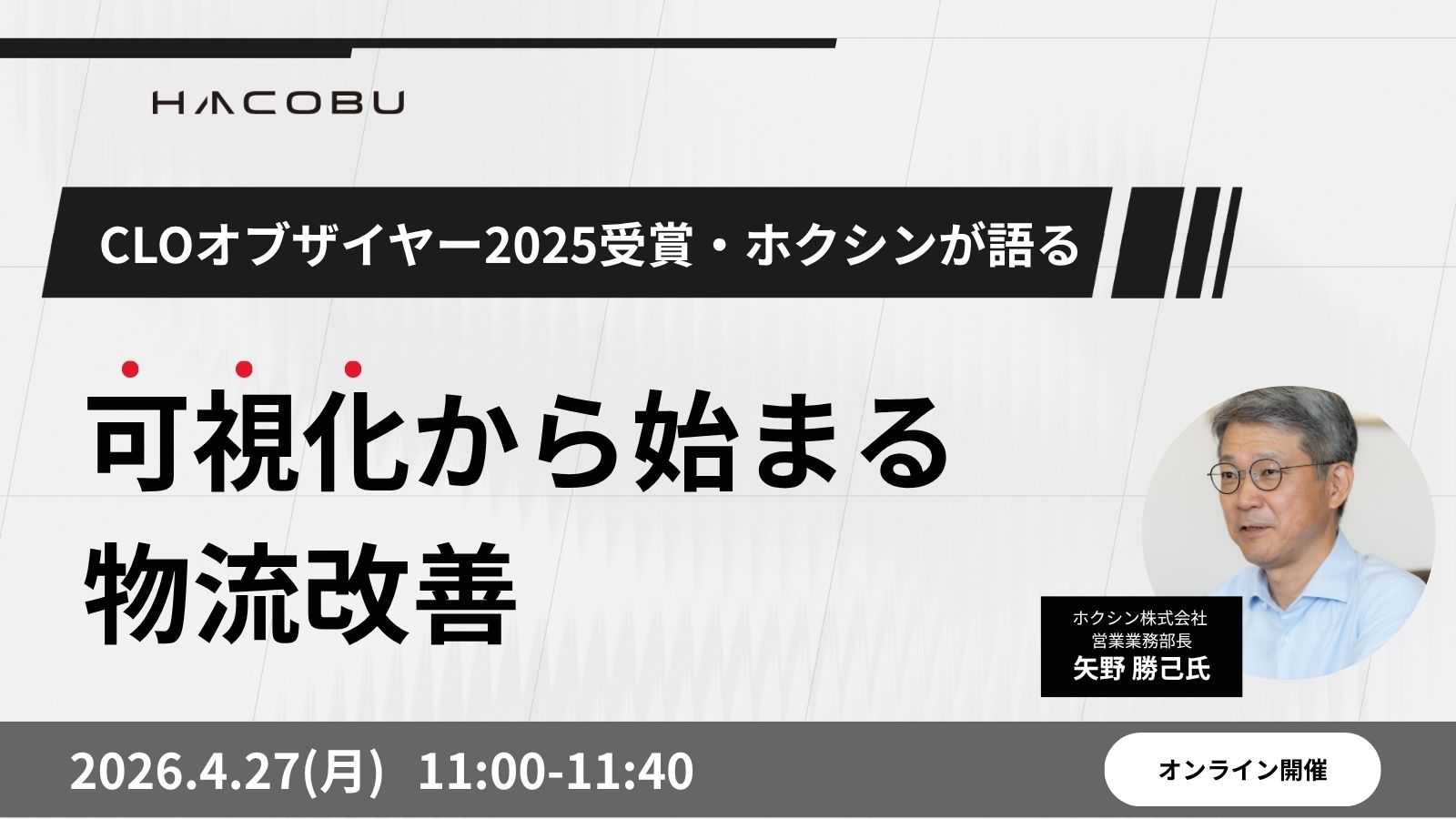 CLO オブザイヤー 2025」でHacobu賞を受賞したホクシン株式会社より矢野勝己氏をお招きし、物流改善の実践についてお話しいただきます。